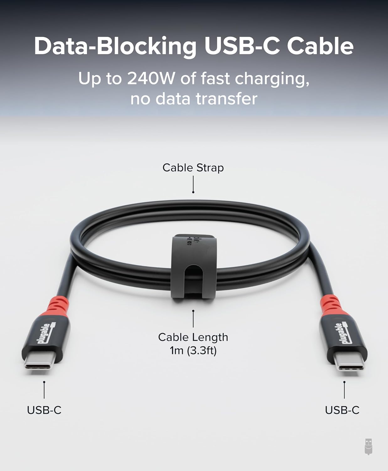 PLUGABLE USB-C CHARGING CABLE 240W WITH DATA BLOCKING 1 METER