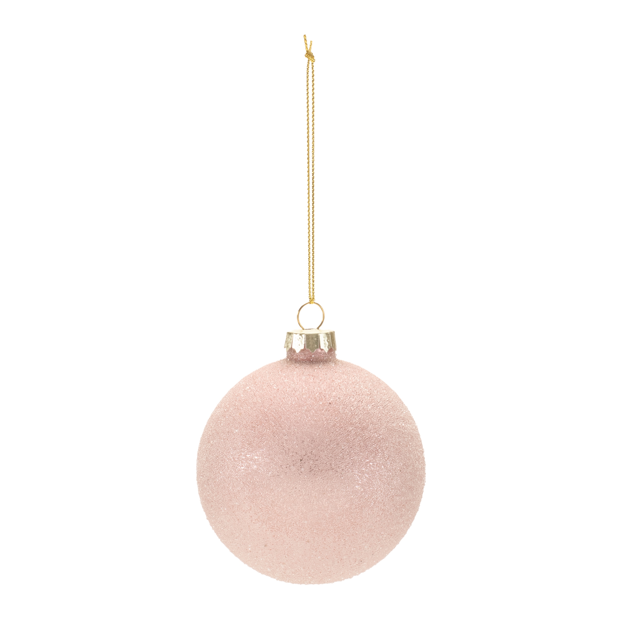 Add a glamorous touch to your holiday decor with this set of 12 Beaded Glass Ball Ornaments. Designed in soft pink tones with elegant metallic touches, these ornaments feature a traditional ball shape adorned with chic beaded accents. The delicate string hanger and champagne ornament cap complete the sophisticated design, making these ornaments perfect for your Christmas tree, wreath, or mantle garland. These beautiful pieces will bring a soft, glamorous charm to your festive displays.