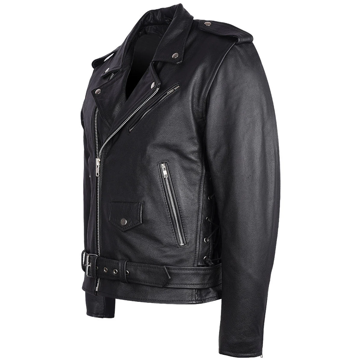 Men's Eagle Embossed Live To Ride - Ride To Live Classic Black Leather Motorcycle Jacket
