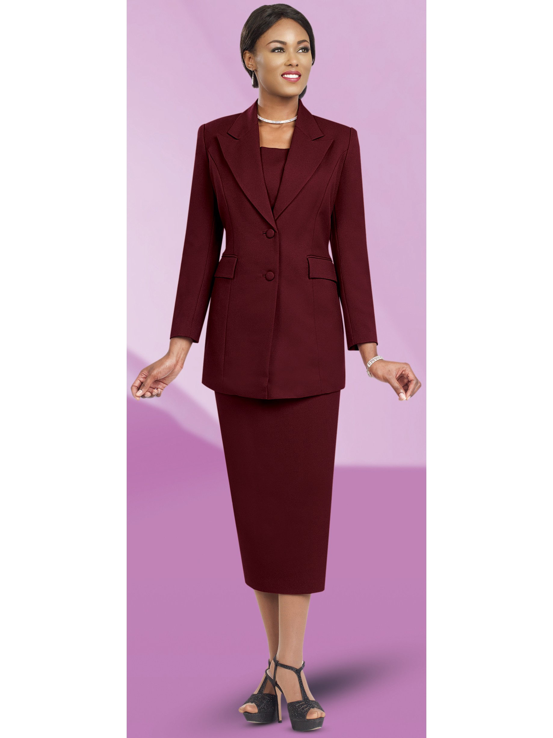This is a classic two-piece women's suit ensemble, consisting of a tailored blazer and a matching skirt. The outfit features a structured, straight silhouette that offers a professional and elegant appearance.